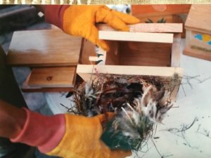After the breeding season was over, we removed the houses to clean and maintain them. It was amazing to find inside, the nests that the birds had made with such care.