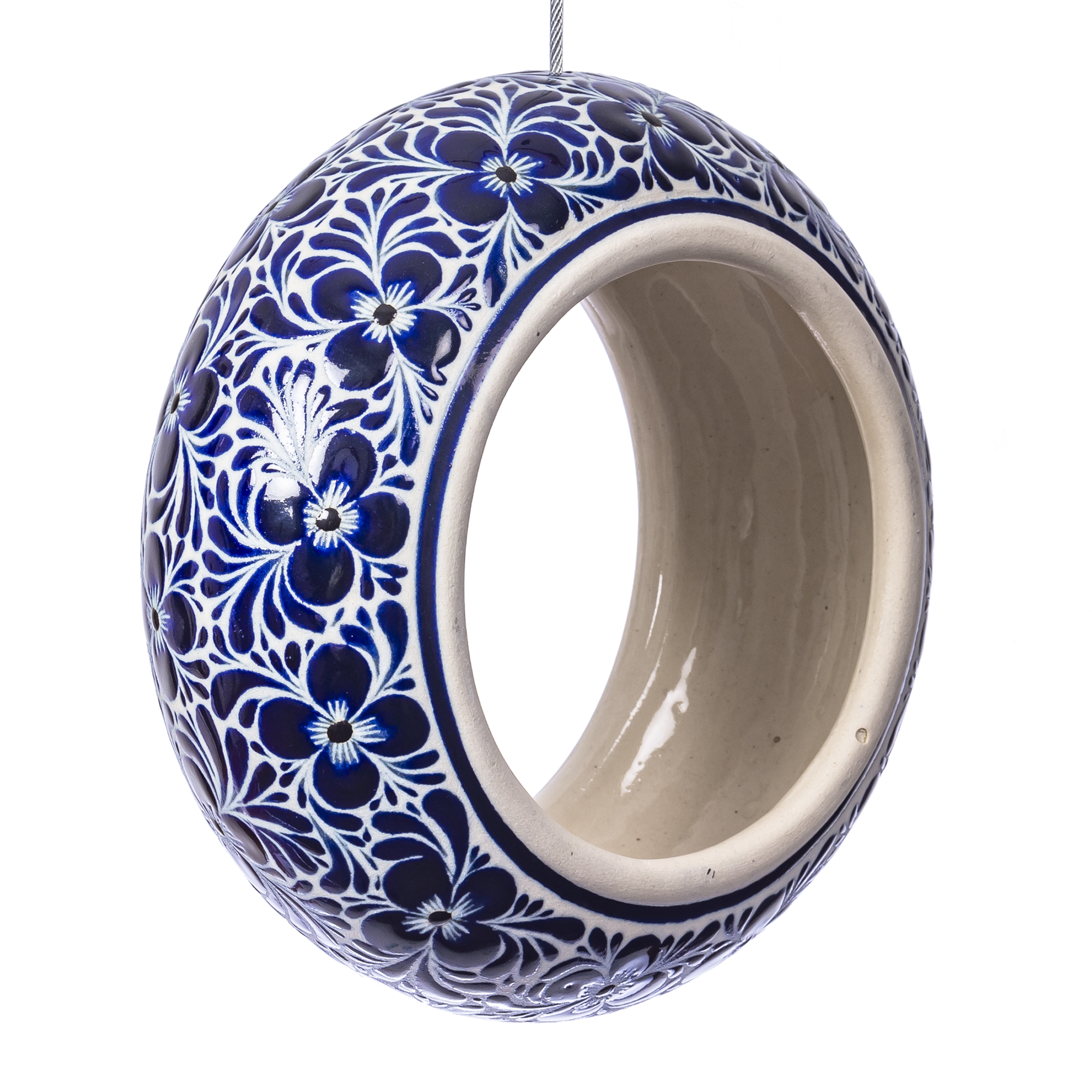 Comedero para aves en libertad, Pieza artesanal, elaborada en Stonewear (gres) , pintada a mano Técnica en relieve en colaboración con artistas de Cerámica Pájaros en Guanajuato, México medidas 20 cm