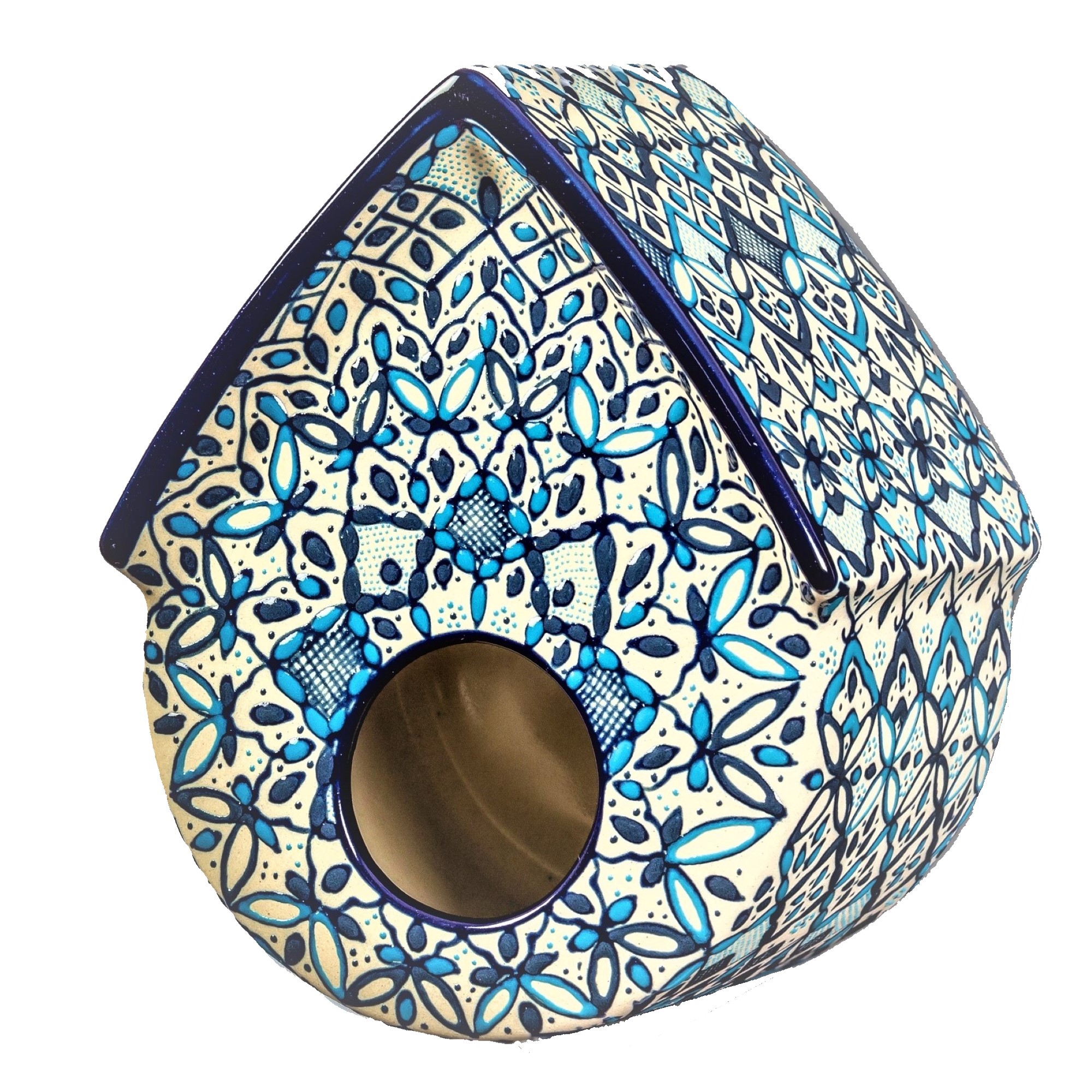 Pajarera para aves en libertad, Pieza artesanal, elaborada en Stonewear (gres) , pintada a mano Técnica en relieve en colaboración con artistas de Cerámica Javier Servin, en La Purísima, Guanajuato, México medidas 20 x 18 cm