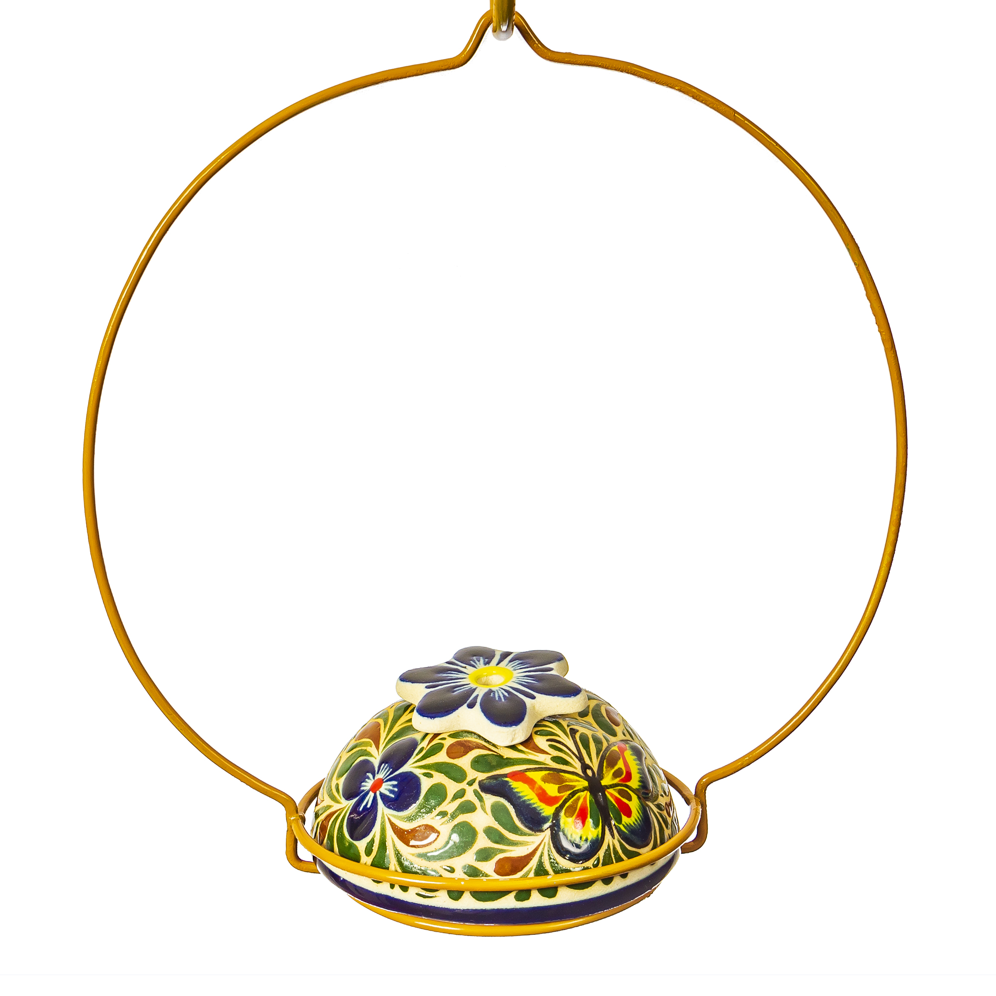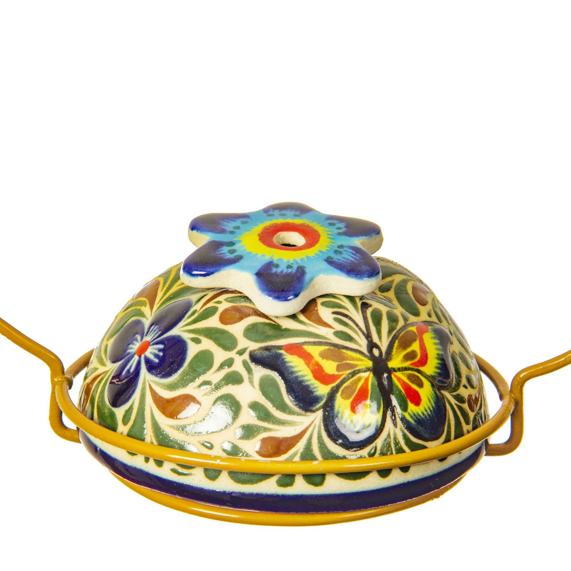 Bebedero para Colibrís, elaborado en cerámica de alta temperatura, pintado a mano Técnica en relieve en colaboración con artista del taller de Pájaros en Guanajuato;  capacidad 3 Oz,