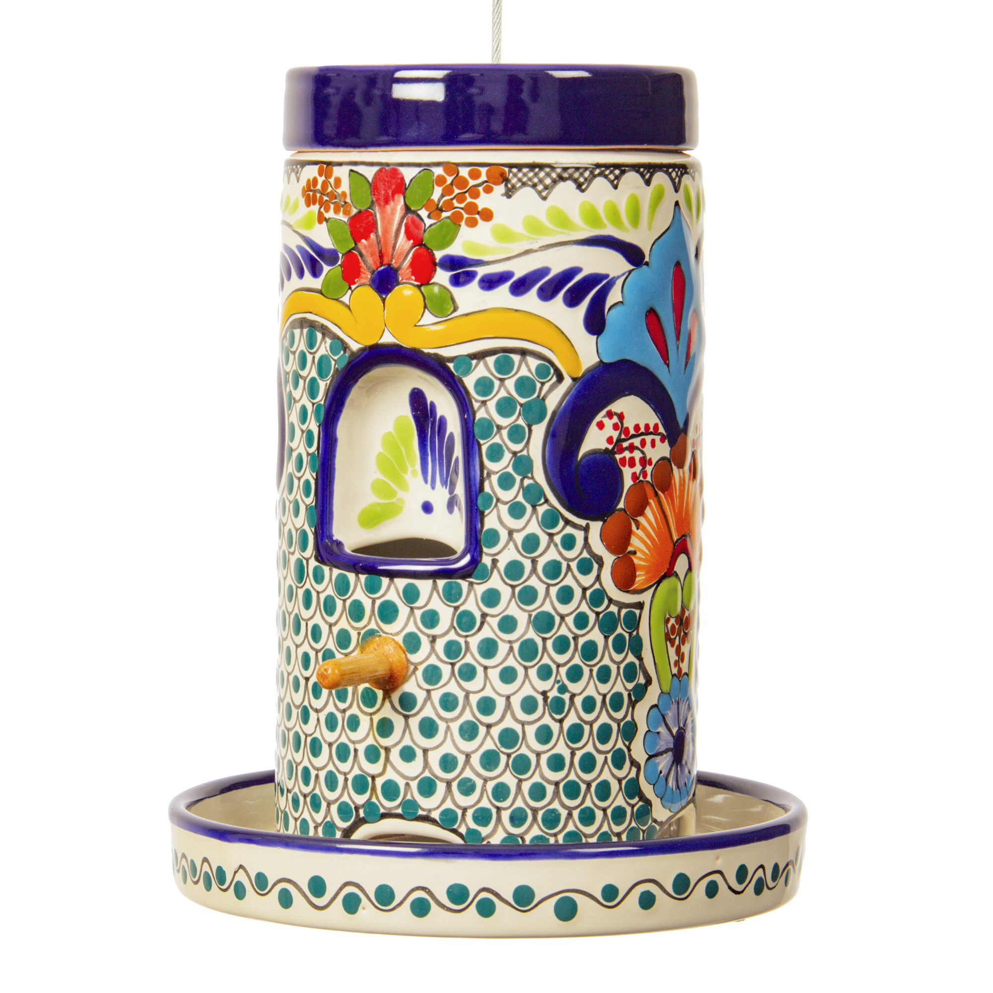 Comedero para aves en libertad, Pieza artesanal, elaborada en barro y pintada a mano Tecnica Talavera, en colaboración con artistas del Taller Talateca. Puebla Pue., México medidas 20 x 15 cm