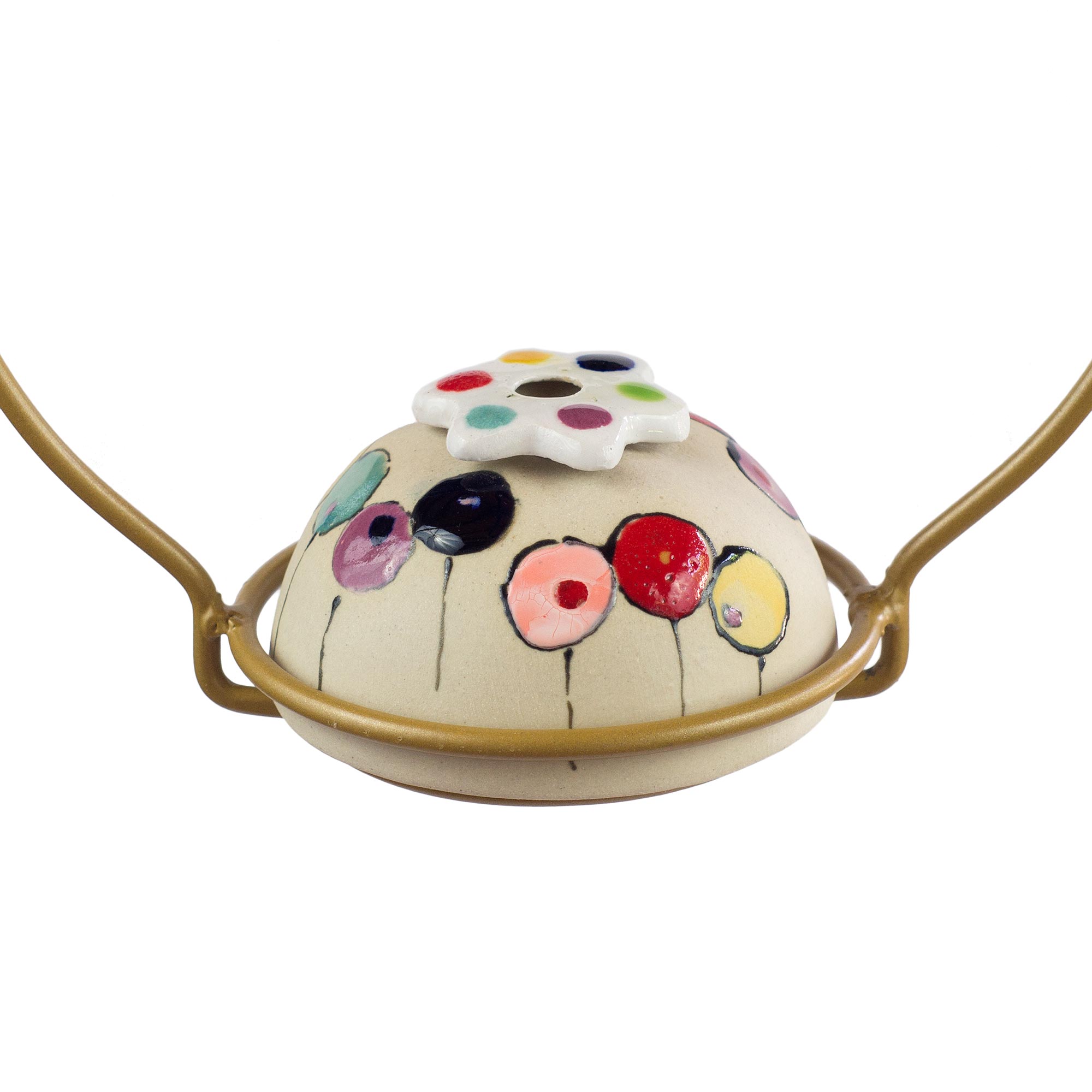 Bebedero para colibríes elaborado en cerámica de alta temperatura (Gres ), pintado a mano, capacidad de 3 Onzas.