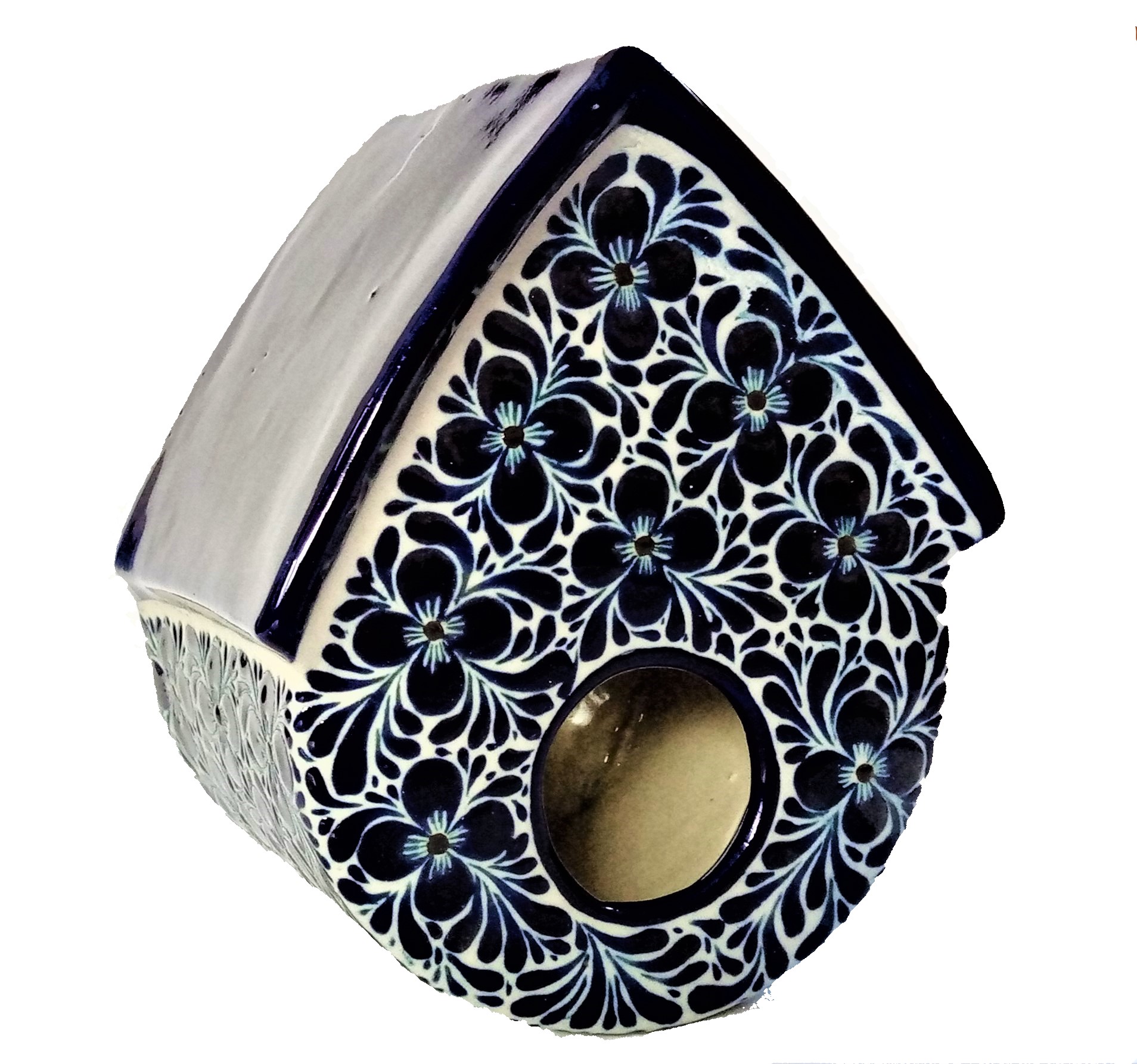 Pajarera para aves en libertad, Pieza artesanal, elaborada en Stonewear (gres) , pintada a mano Técnica en relieve en colaboración con artistas de Cerámica Pájaros, Guanajuato, México medidas 20 x 18 cm